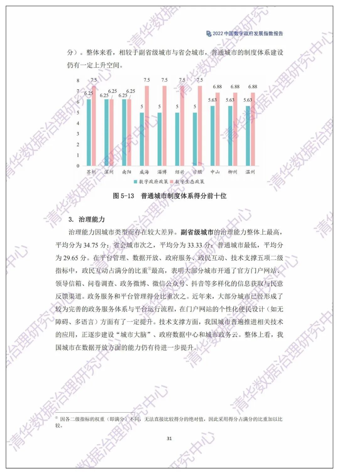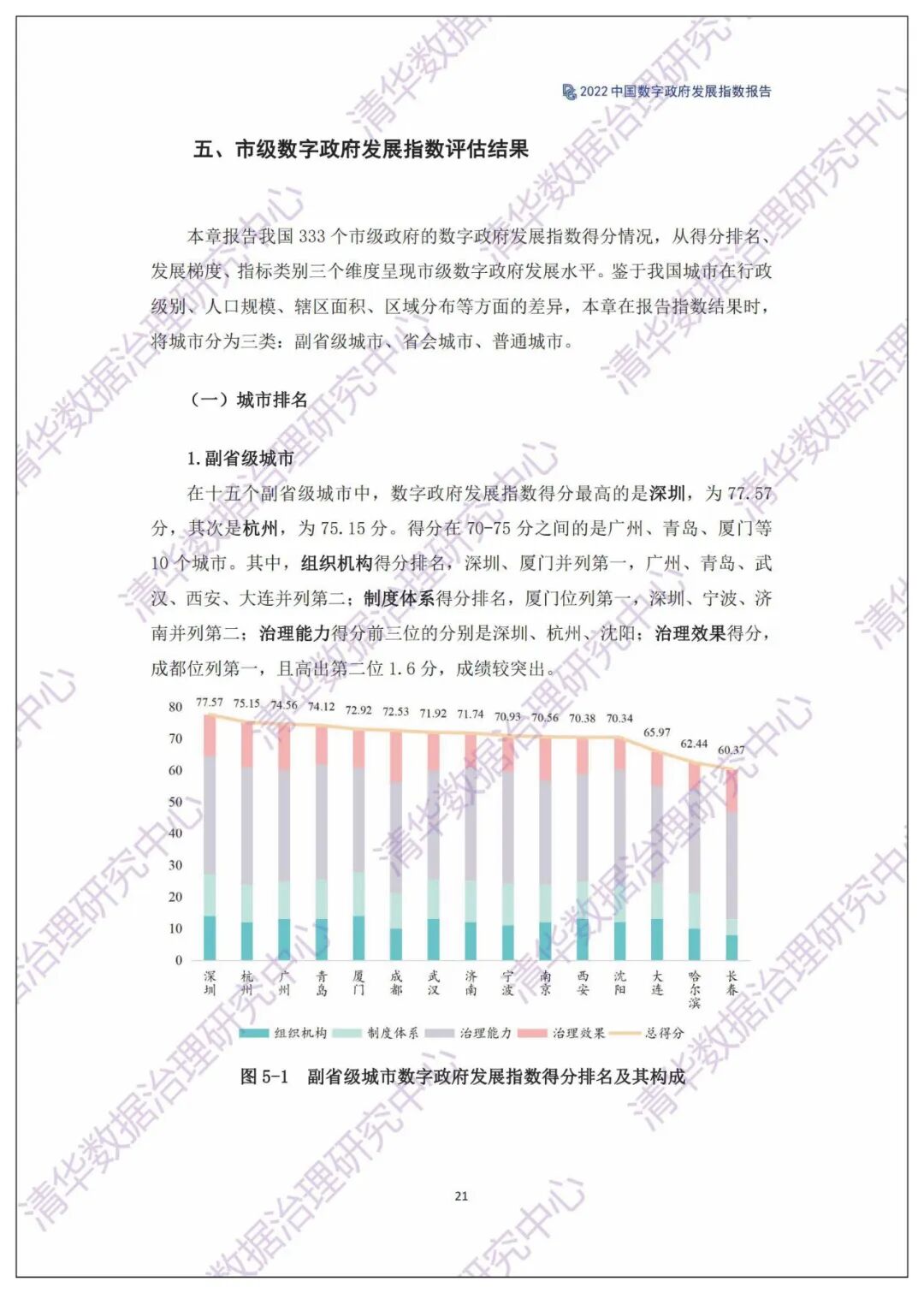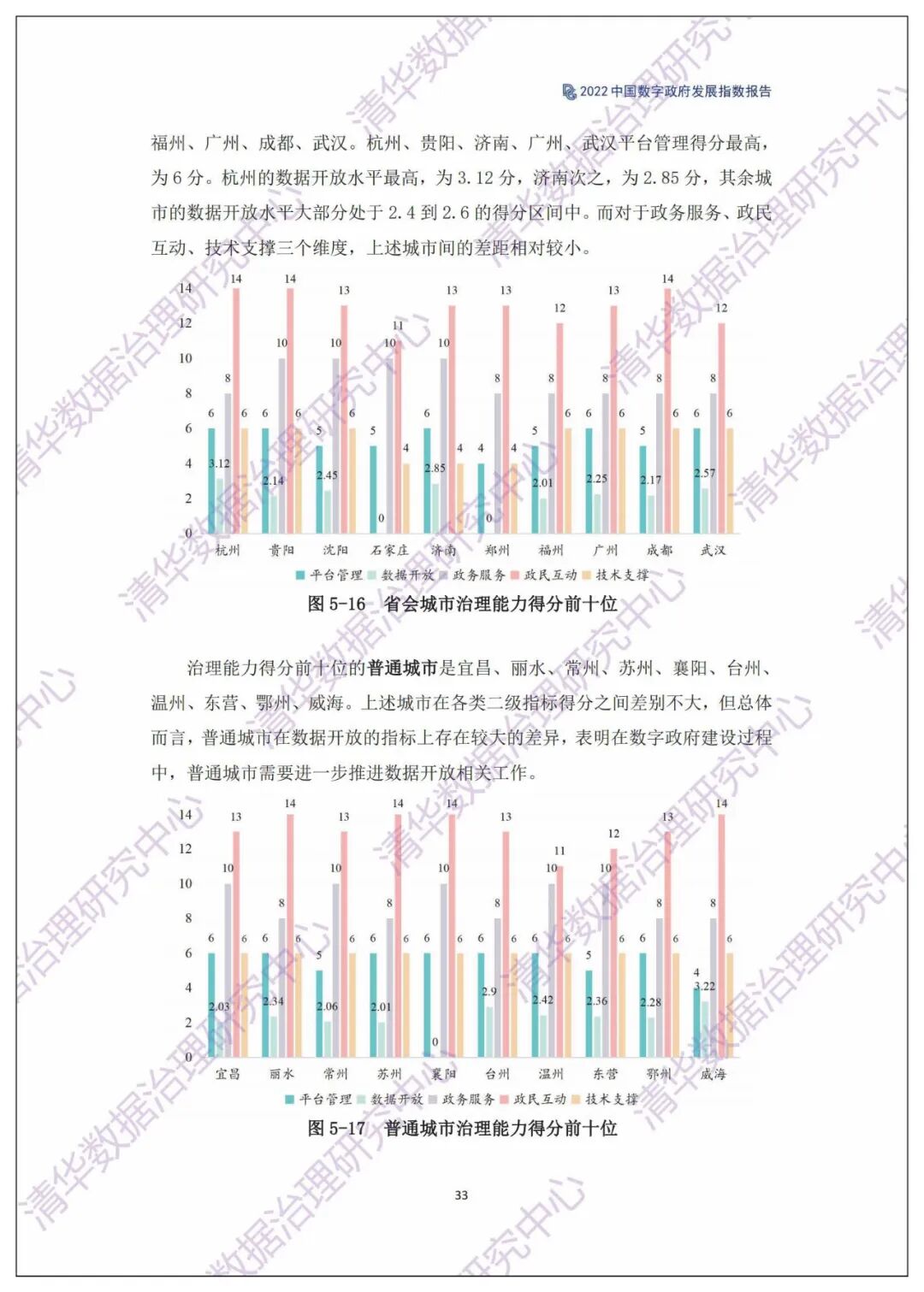 在此背景下,清华大学数据治理研究中心近日发布了《2022中国数字政府发展指数报告》,该的评估对象全面覆盖31个省、333个地级市,综合评估了囊括电子政务、“互联网+”、智慧城市、数字政府、数字经济等政府数字化转型不同发展阶段的组织机构、制度体系、治理能力和治理效果情况。