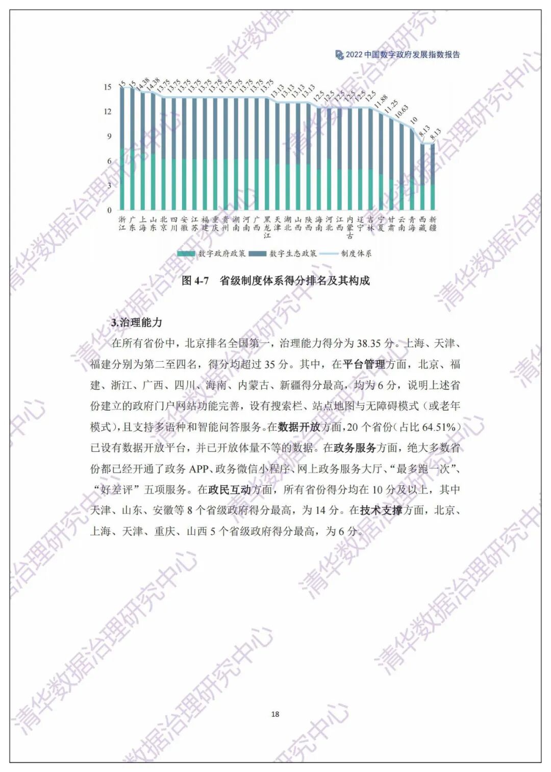 4、治理能力维度方面。北京排名全国第一,治理能力得分为38.35分。