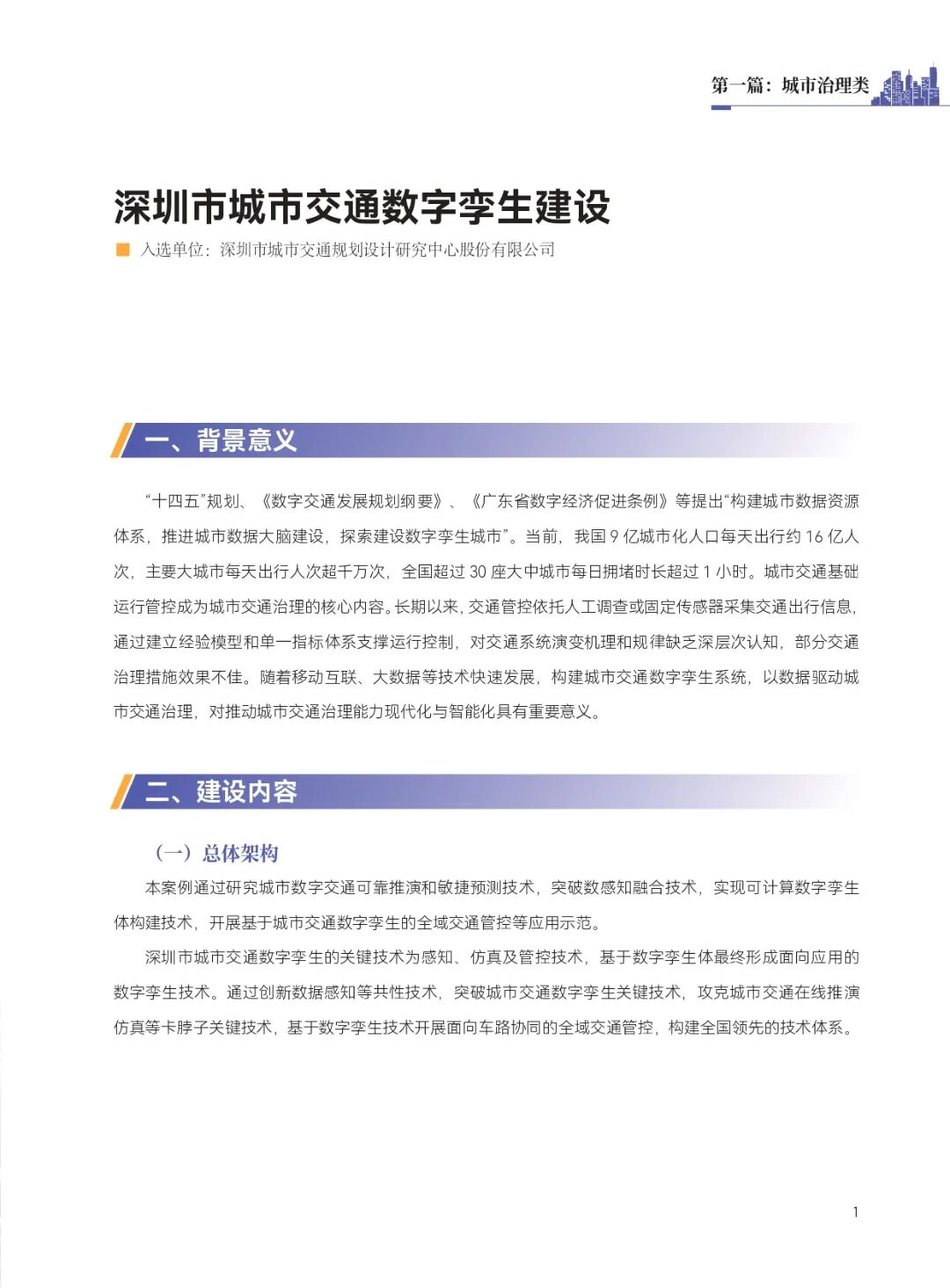 1. 深圳市城市交通数字孪生建设
