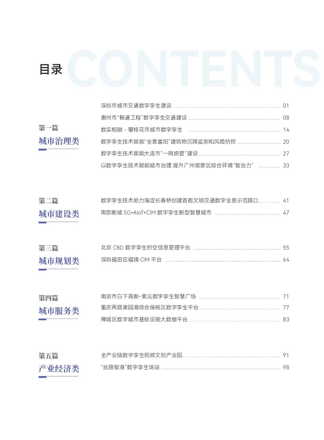本案例集由涵盖城市治理、城市建设、城市规划、城市服务和产业经济5类典型应用场景的优秀案例汇编形成,覆盖交通、建筑体、园区、港区、景区、城市部件等多领域,较为全面地展示了城市数字孪生技术应用的优秀成果。